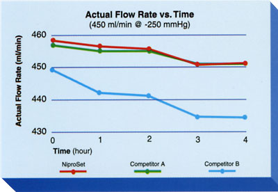 Laboratory testing demonstrated that when compared with two leading brands of blood tubing, NiproSet delivered an accurate and consistent flow rate over time.